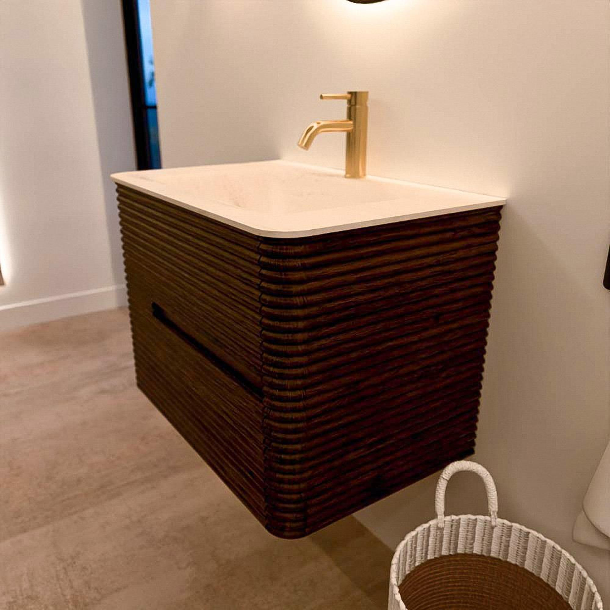 Mondiaz CIRO-DLUX Badkamermeubelset - 70x45x50cm - Solid surface wastafel Meli - 1 wasbak Midden - 1 kraangat - 2 lades - Walnut