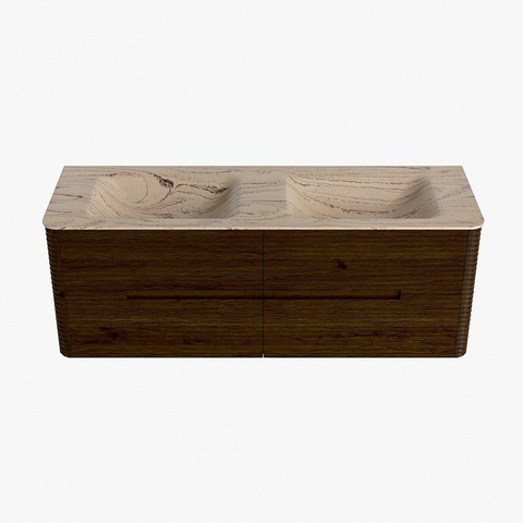 Mondiaz CIRO-DLUX Badkamermeubelset - 140x45x50cm - Solid surface wastafel Arena - 2 wasbak Dubbel - zonder kraangaten - 4 lades - Walnut