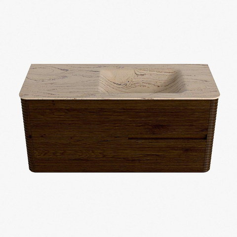 Mondiaz CIRO-DLUX Badkamermeubelset - 110x45x50cm - Solid surface wastafel Arena - 1 wasbak Rechts - zonder kraangaten - 2 lades - Walnut