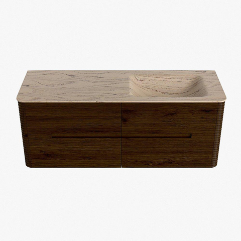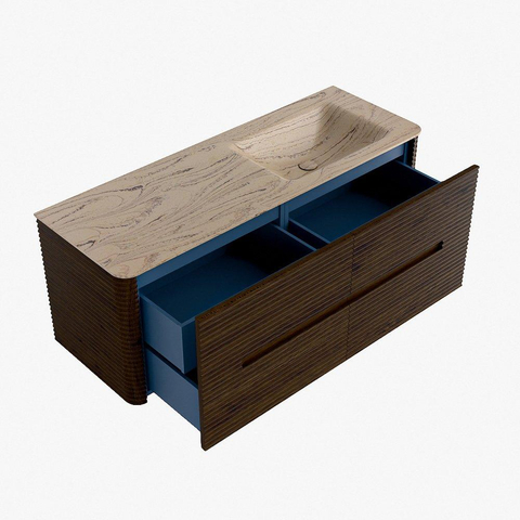 Mondiaz CIRO-DLUX Badkamermeubelset - 130x45x50cm - Solid surface wastafel Arena - 1 wasbak Rechts - zonder kraangaten - 4 lades - Walnut