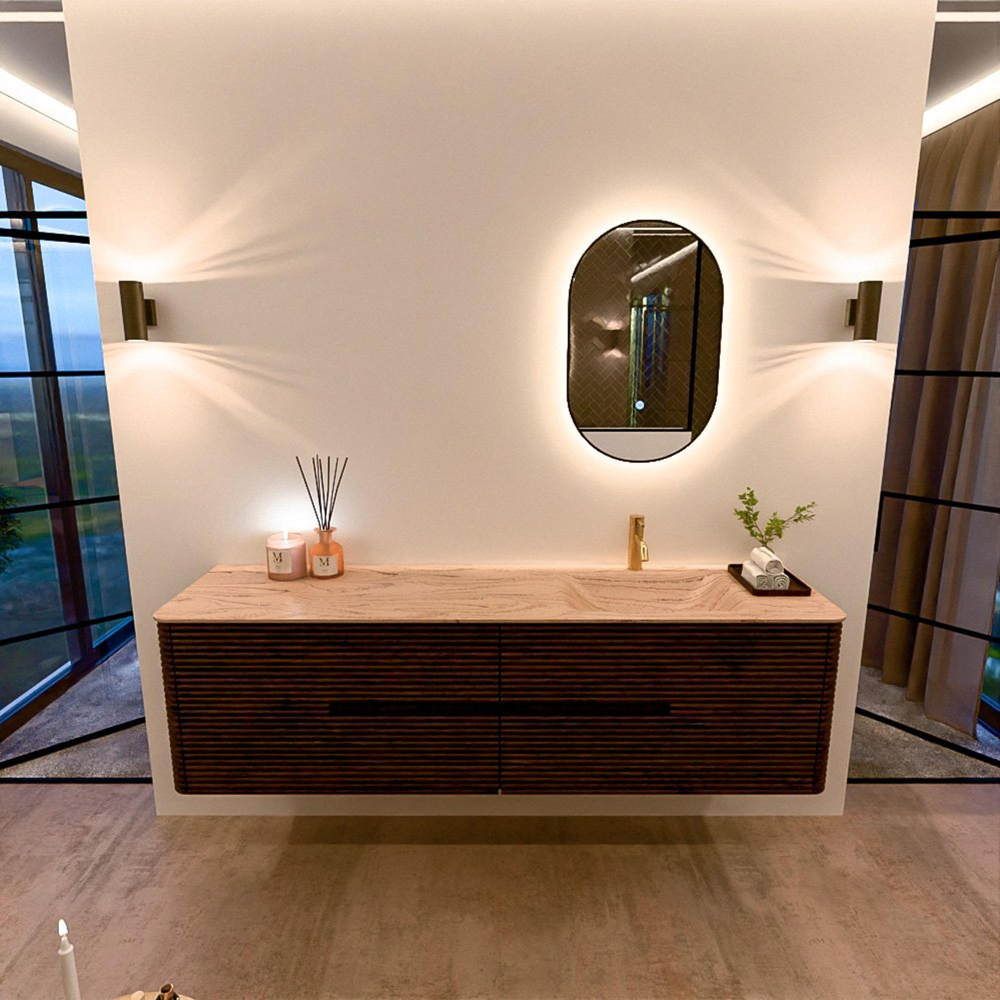 Mondiaz CIRO-DLUX Badkamermeubelset - 180x45x50cm - Solid surface wastafel Arena - 1 wasbak Rechts - 1 kraangat - 4 lades - Walnut