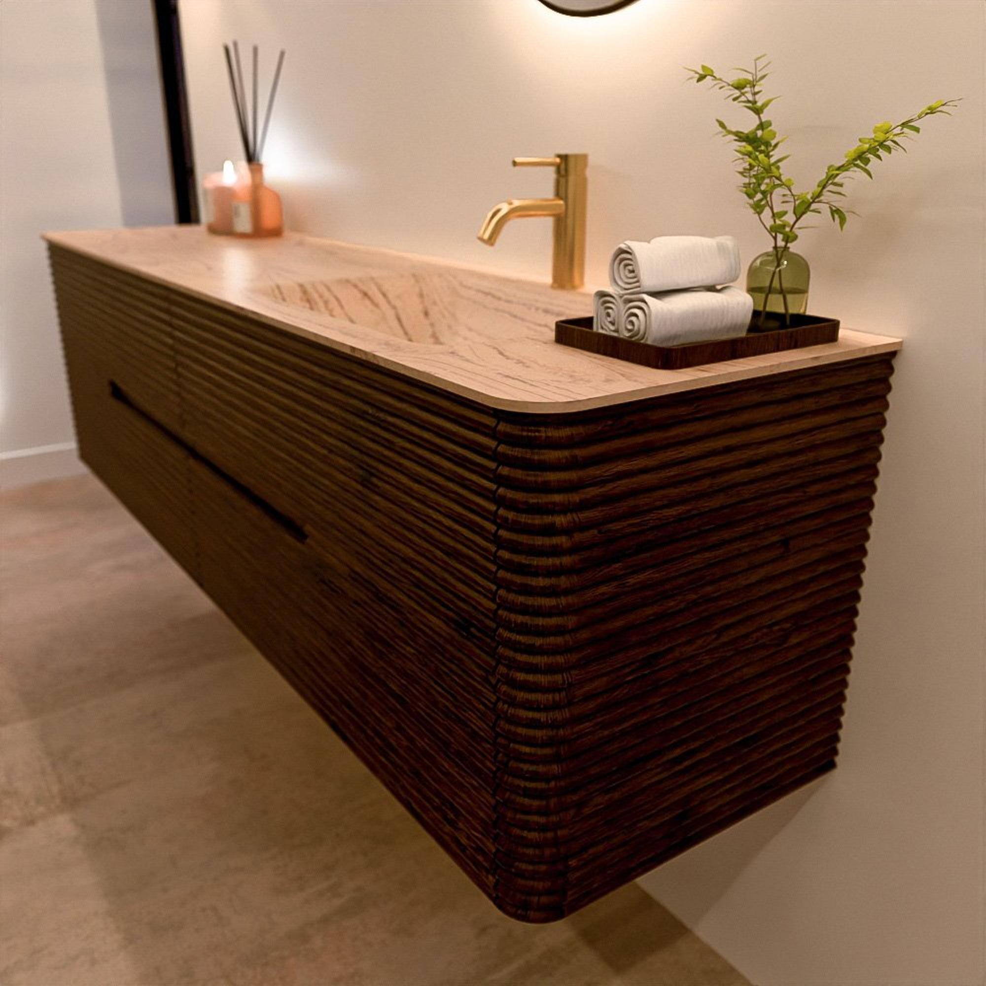 Het CIRO-DLUX badkamermeubel is ontwikkeld voor wie kiest voor modern design, natuurlijke materialen en hoogwaardige functionaliteit. Met maatvoeringen van 70 cm tot 190 cm past de CIRO-serie moeiteloos in zowel compacte badkamers als royale designruimtes. Elk meubel is een uitgebalanceerde combinatie van esthetiek, ambacht en duurzame kwaliteit.
