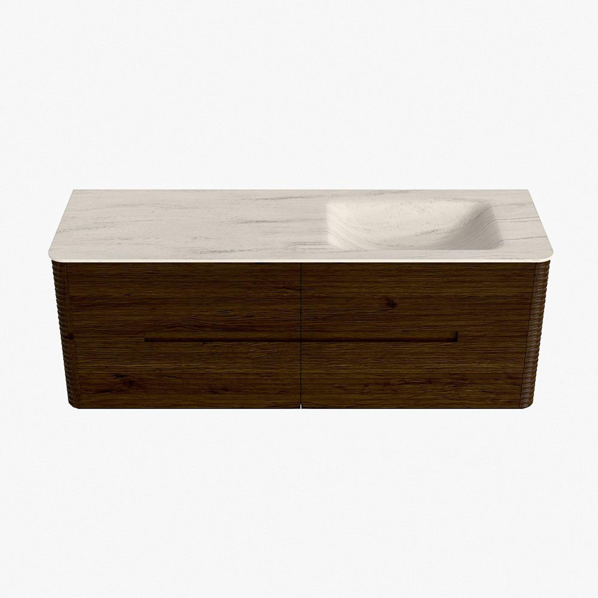 Mondiaz CIRO-DLUX Badkamermeubelset - 140x45x50cm - Solid surface wastafel Meli - 1 wasbak Rechts - 1 kraangat - 4 lades - Walnut