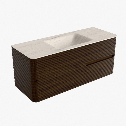 Mondiaz CIRO-DLUX Badkamermeubelset - 120x45x50cm - Solid surface wastafel Meli - 1 wasbak Midden - zonder kraangaten - 2 lades - Walnut