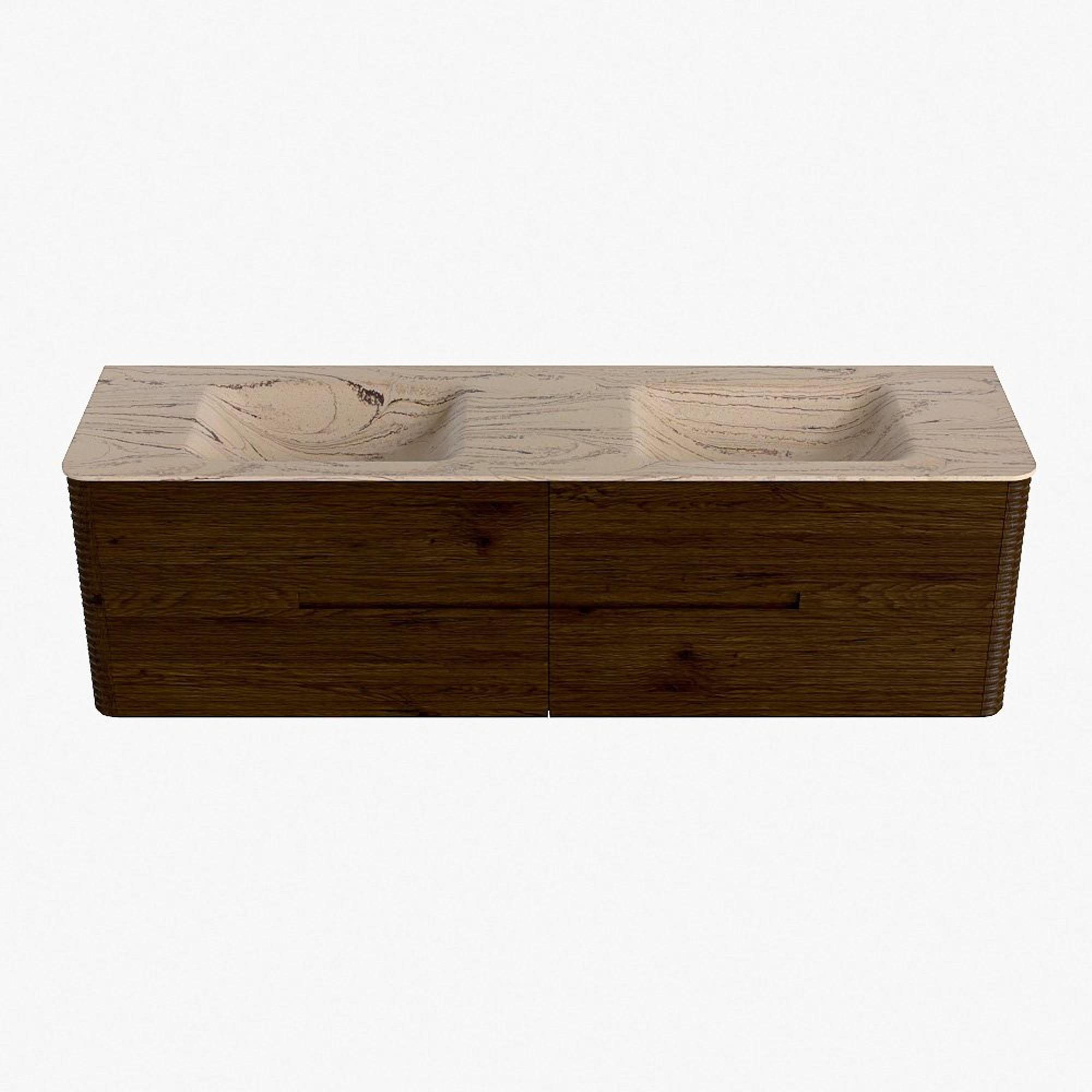 Mondiaz CIRO-DLUX Badkamermeubelset - 170x45x50cm - Solid surface wastafel Arena - 2 wasbak Dubbel - 2 kraangaten - 4 lades - Walnut