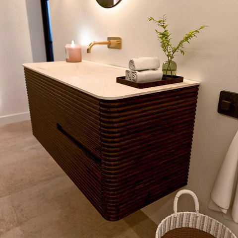Mondiaz CIRO-DLUX Badkamermeubelset - 110x45x50cm - Solid surface wastafel Meli - 1 wasbak Links - zonder kraangaten - 2 lades - Walnut