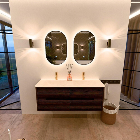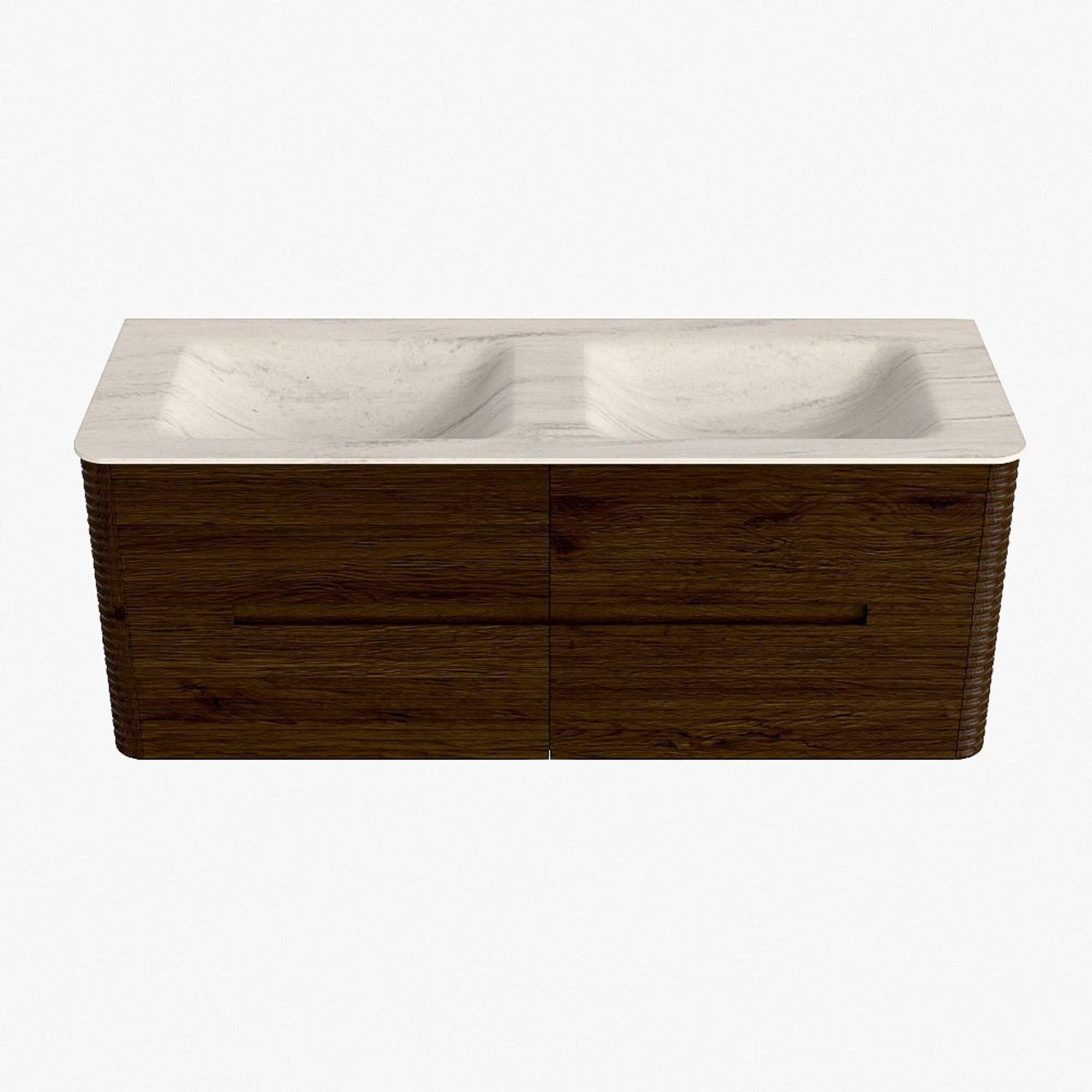 Mondiaz CIRO-DLUX Badkamermeubelset - 130x45x50cm - Solid surface wastafel Meli - 2 wasbak Dubbel - 2 kraangaten - 4 lades - Walnut