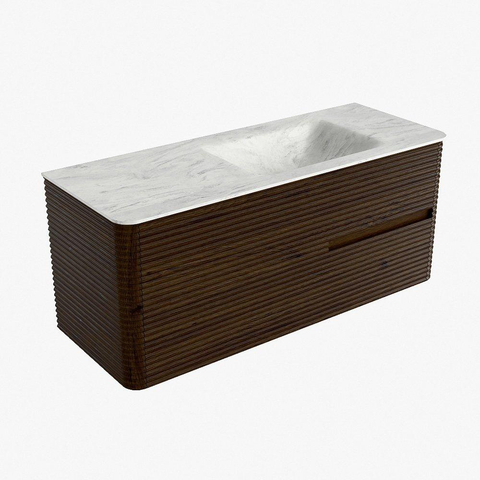 Mondiaz CIRO-DLUX Badkamermeubelset - 120x45x50cm - Solid surface wastafel Opalo - 1 wasbak Rechts - zonder kraangaten - 2 lades - Walnut