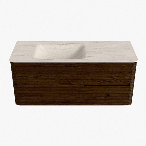 Mondiaz CIRO-DLUX Badkamermeubelset - 120x45x50cm - Solid surface wastafel Meli - 1 wasbak Links - 1 kraangat - 2 lades - Walnut