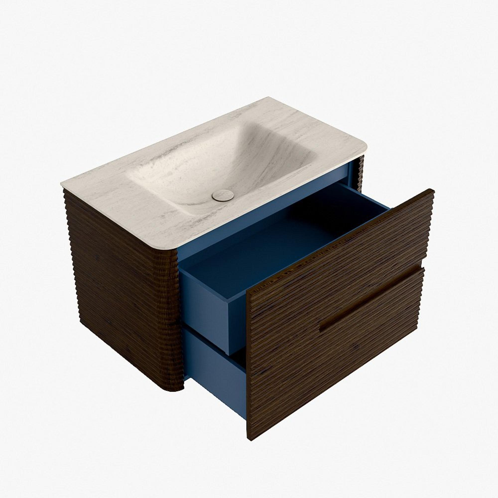 Mondiaz CIRO-DLUX Badkamermeubelset - 80x45x50cm - Solid surface wastafel Meli - 1 wasbak Midden - zonder kraangaten - 2 lades - Walnut