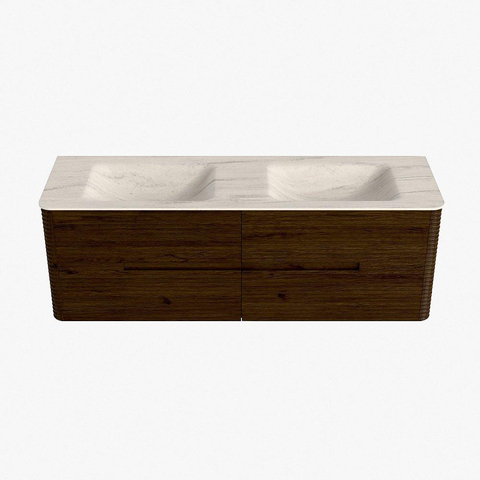 Mondiaz CIRO-DLUX Badkamermeubelset - 150x45x50cm - Solid surface wastafel Meli - 2 wasbak Dubbel - zonder kraangaten - 4 lades - Walnut