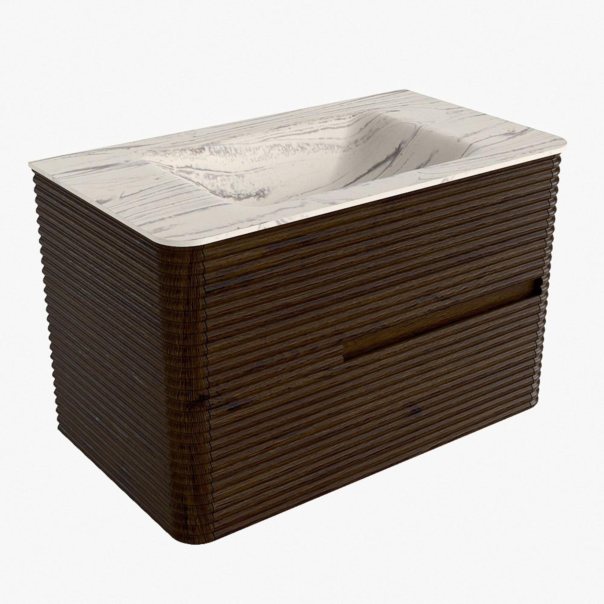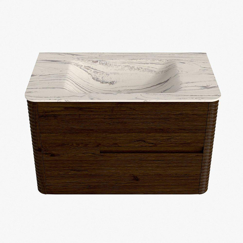 Mondiaz CIRO-DLUX Badkamermeubelset - 80x45x50cm - Solid surface wastafel Nata - 1 wasbak Midden - 1 kraangat - 2 lades - Walnut