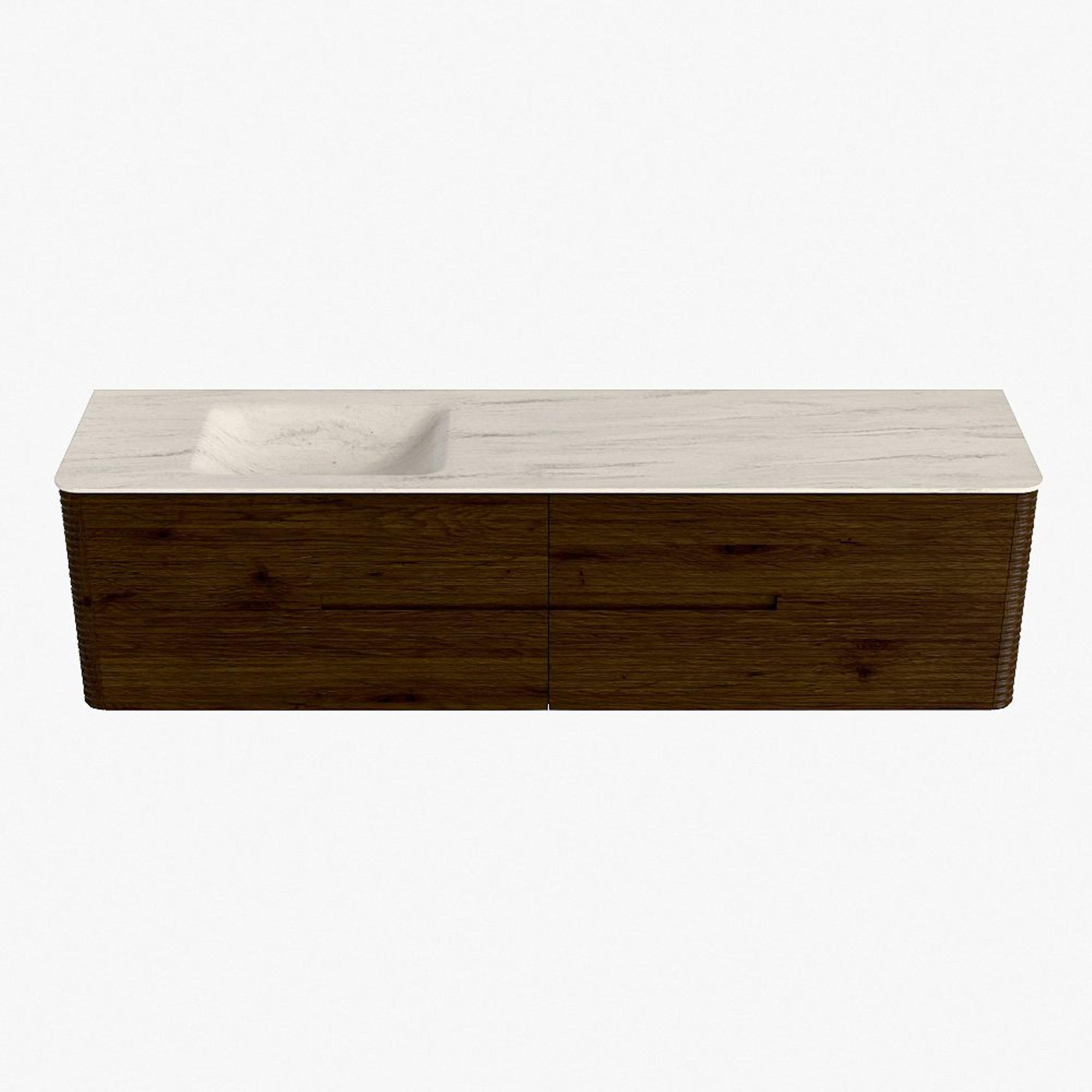 Mondiaz CIRO-DLUX Badkamermeubelset - 190x45x50cm - Solid surface wastafel Meli - 1 wasbak Links - 1 kraangat - 4 lades - Walnut