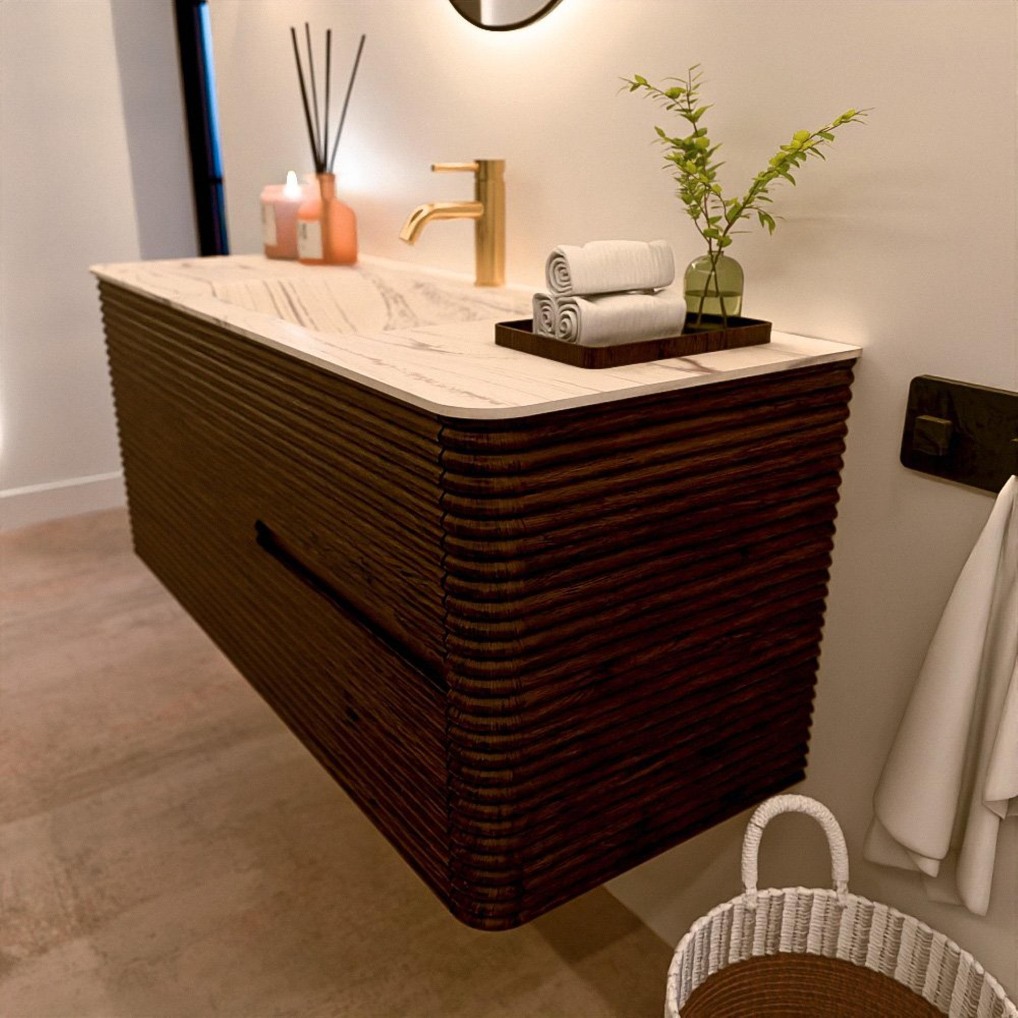 Het CIRO-DLUX badkamermeubel is ontwikkeld voor wie kiest voor modern design, natuurlijke materialen en hoogwaardige functionaliteit. Met maatvoeringen van 70 cm tot 190 cm past de CIRO-serie moeiteloos in zowel compacte badkamers als royale designruimtes. Elk meubel is een uitgebalanceerde combinatie van esthetiek, ambacht en duurzame kwaliteit.