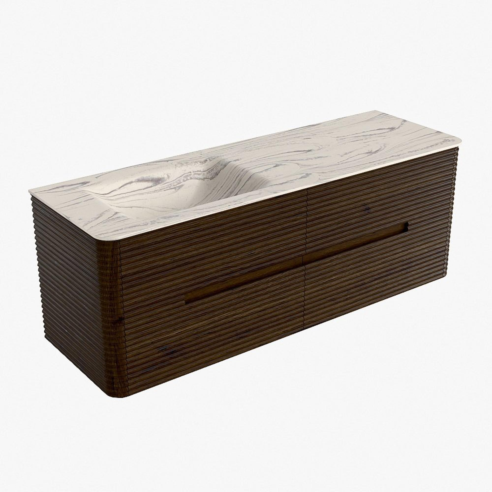 Mondiaz CIRO-DLUX Badkamermeubelset - 140x45x50cm - Solid surface wastafel Nata - 1 wasbak Links - 1 kraangat - 4 lades - Walnut