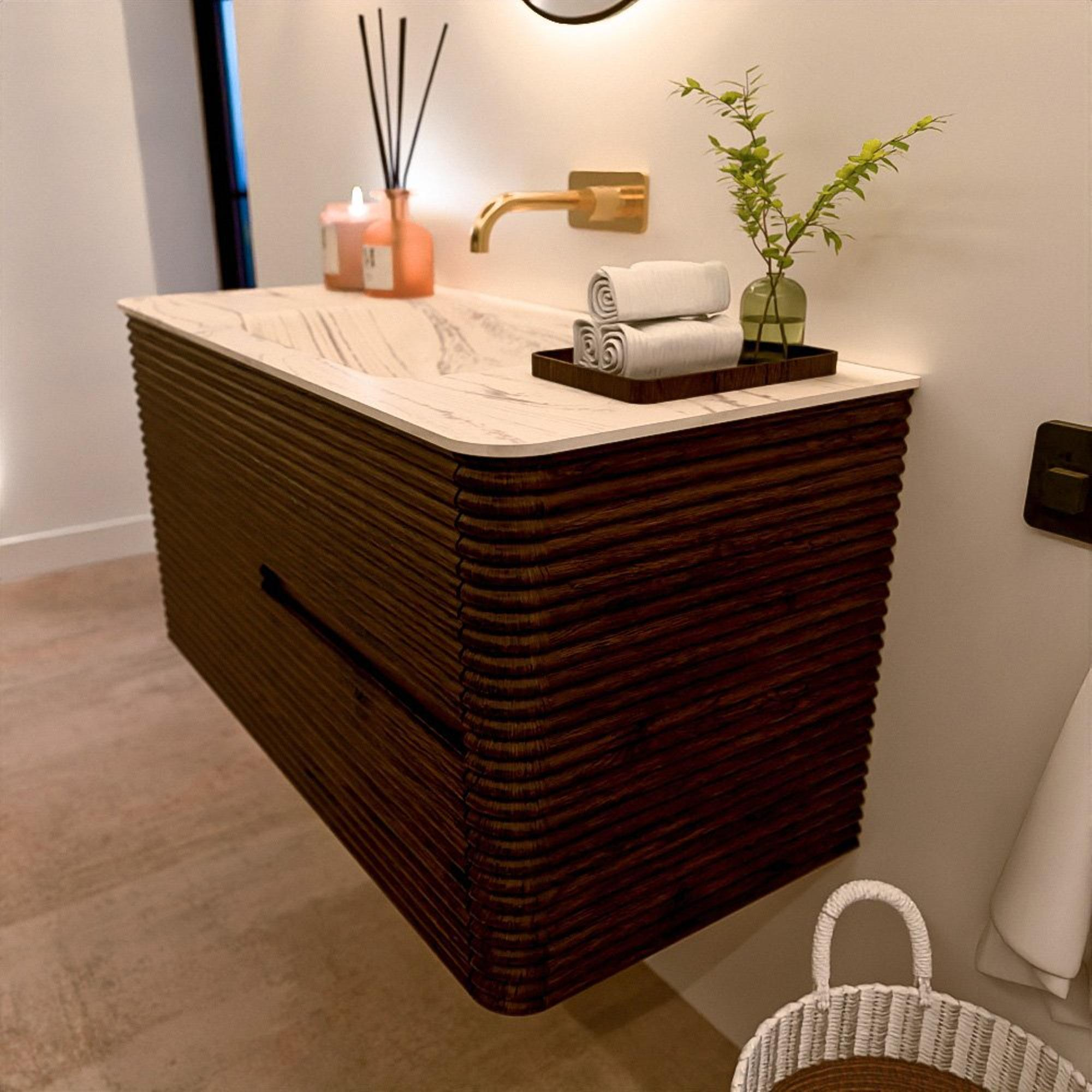 Het CIRO-DLUX badkamermeubel is ontwikkeld voor wie kiest voor modern design, natuurlijke materialen en hoogwaardige functionaliteit. Met maatvoeringen van 70 cm tot 190 cm past de CIRO-serie moeiteloos in zowel compacte badkamers als royale designruimtes. Elk meubel is een uitgebalanceerde combinatie van esthetiek, ambacht en duurzame kwaliteit.