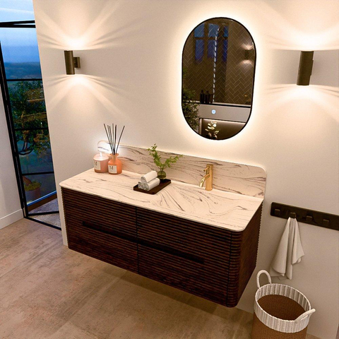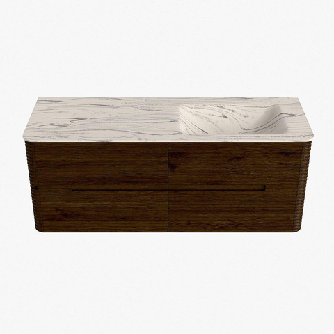 Mondiaz CIRO-DLUX Badkamermeubelset - 130x45x50cm - Solid surface wastafel Nata - 1 wasbak Rechts - 1 kraangat - 4 lades - Walnut