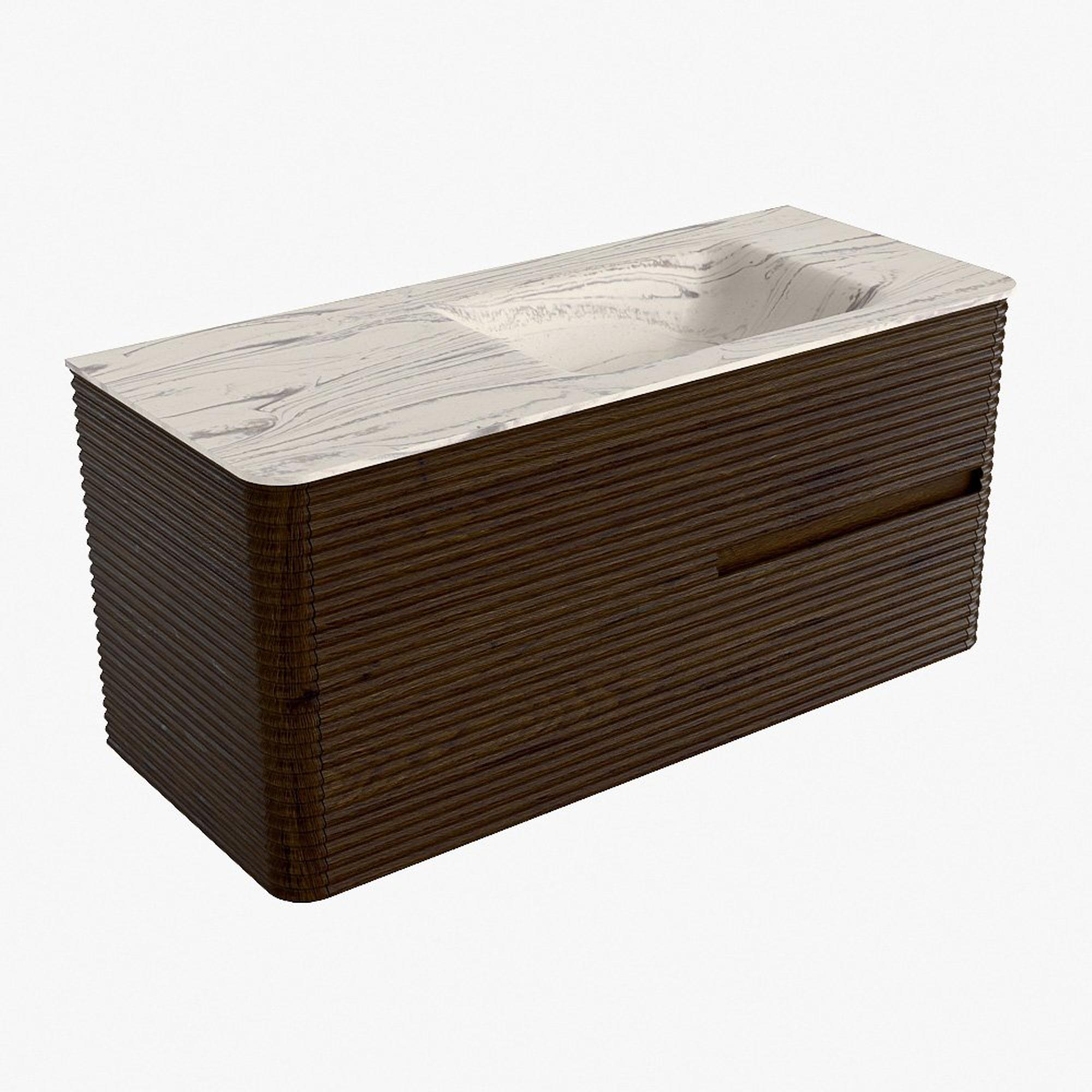 Mondiaz CIRO-DLUX Badkamermeubelset - 110x45x50cm - Solid surface wastafel Nata - 1 wasbak Rechts - 1 kraangat - 2 lades - Walnut