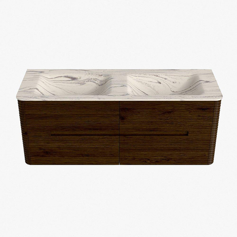 Mondiaz CIRO-DLUX Badkamermeubelset - 130x45x50cm - Solid surface wastafel Nata - 2 wasbak Dubbel - zonder kraangaten - 4 lades - Walnut