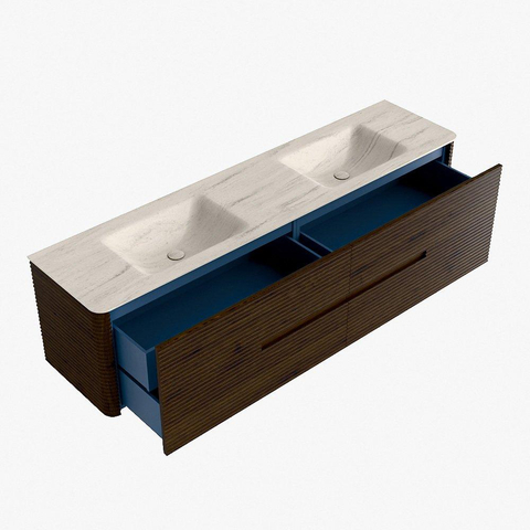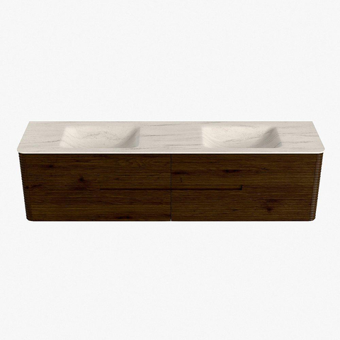 Mondiaz CIRO-DLUX Badkamermeubelset - 190x45x50cm - Solid surface wastafel Meli - 2 wasbak Dubbel - 2 kraangaten - 4 lades - Walnut
