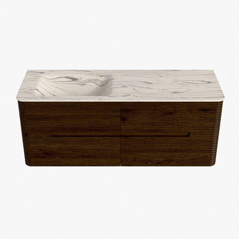 Mondiaz CIRO-DLUX Badkamermeubelset - 130x45x50cm - Solid surface wastafel Nata - 1 wasbak Links - 1 kraangat - 4 lades - Walnut