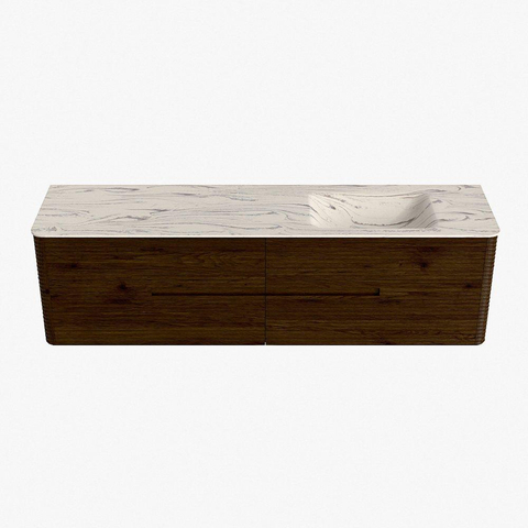 Mondiaz CIRO-DLUX Badkamermeubelset - 180x45x50cm - Solid surface wastafel Nata - 1 wasbak Rechts - 1 kraangat - 4 lades - Walnut