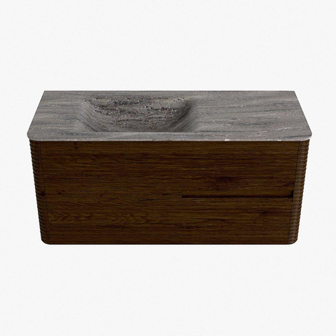 Mondiaz CIRO-DLUX Badkamermeubelset - 110x45x50cm - Solid surface wastafel Oza - 1 wasbak Links - zonder kraangaten - 2 lades - Walnut