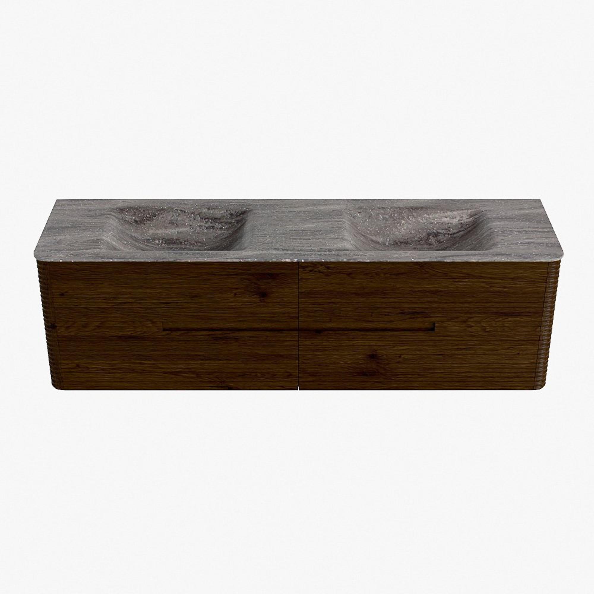 Mondiaz CIRO-DLUX Badkamermeubelset - 170x45x50cm - Solid surface wastafel Oza - 2 wasbak Dubbel - 2 kraangaten - 4 lades - Walnut