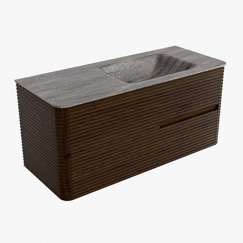 Mondiaz CIRO-DLUX Badkamermeubelset - 110x45x50cm - Solid surface wastafel Oza - 1 wasbak Rechts - 1 kraangat - 2 lades - Walnut