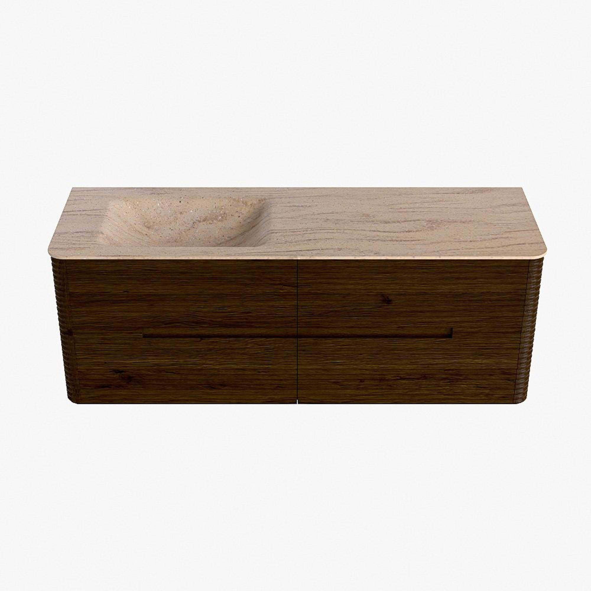 Mondiaz CIRO-DLUX Badkamermeubelset - 140x45x50cm - Solid surface wastafel Saba - 1 wasbak Links - 1 kraangat - 4 lades - Walnut