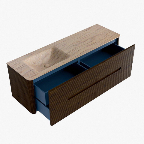 Mondiaz CIRO-DLUX Badkamermeubelset - 150x45x50cm - Solid surface wastafel Saba - 1 wasbak Links - 1 kraangat - 4 lades - Walnut