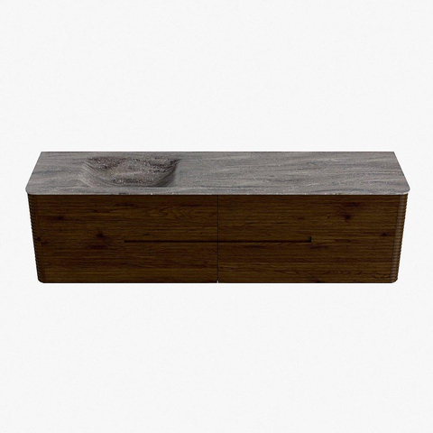 Mondiaz CIRO-DLUX Badkamermeubelset - 180x45x50cm - Solid surface wastafel Oza - 1 wasbak Links - 1 kraangat - 4 lades - Walnut