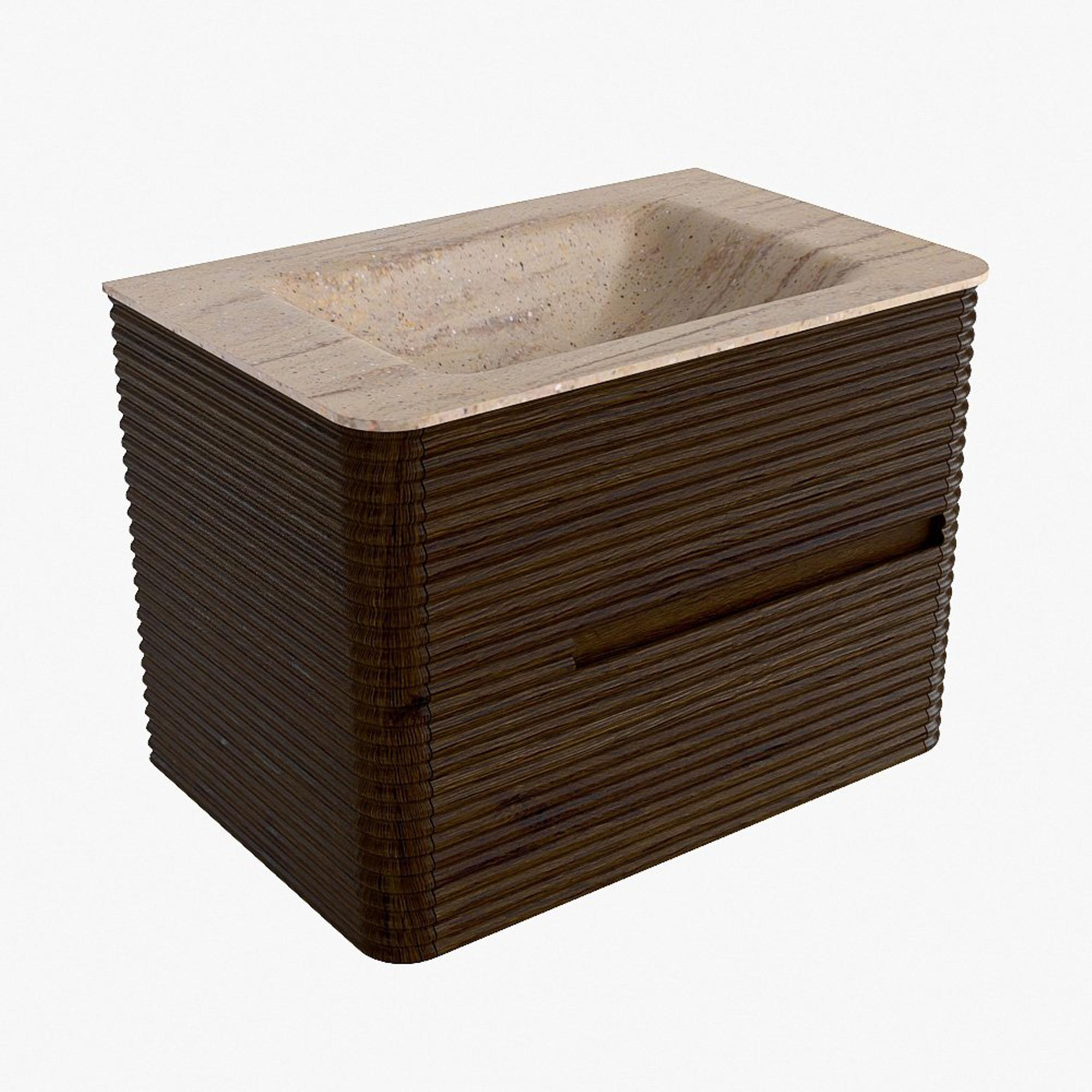 Mondiaz CIRO-DLUX Badkamermeubelset - 70x45x50cm - Solid surface wastafel Saba - 1 wasbak Midden - zonder kraangaten - 2 lades - Walnut
