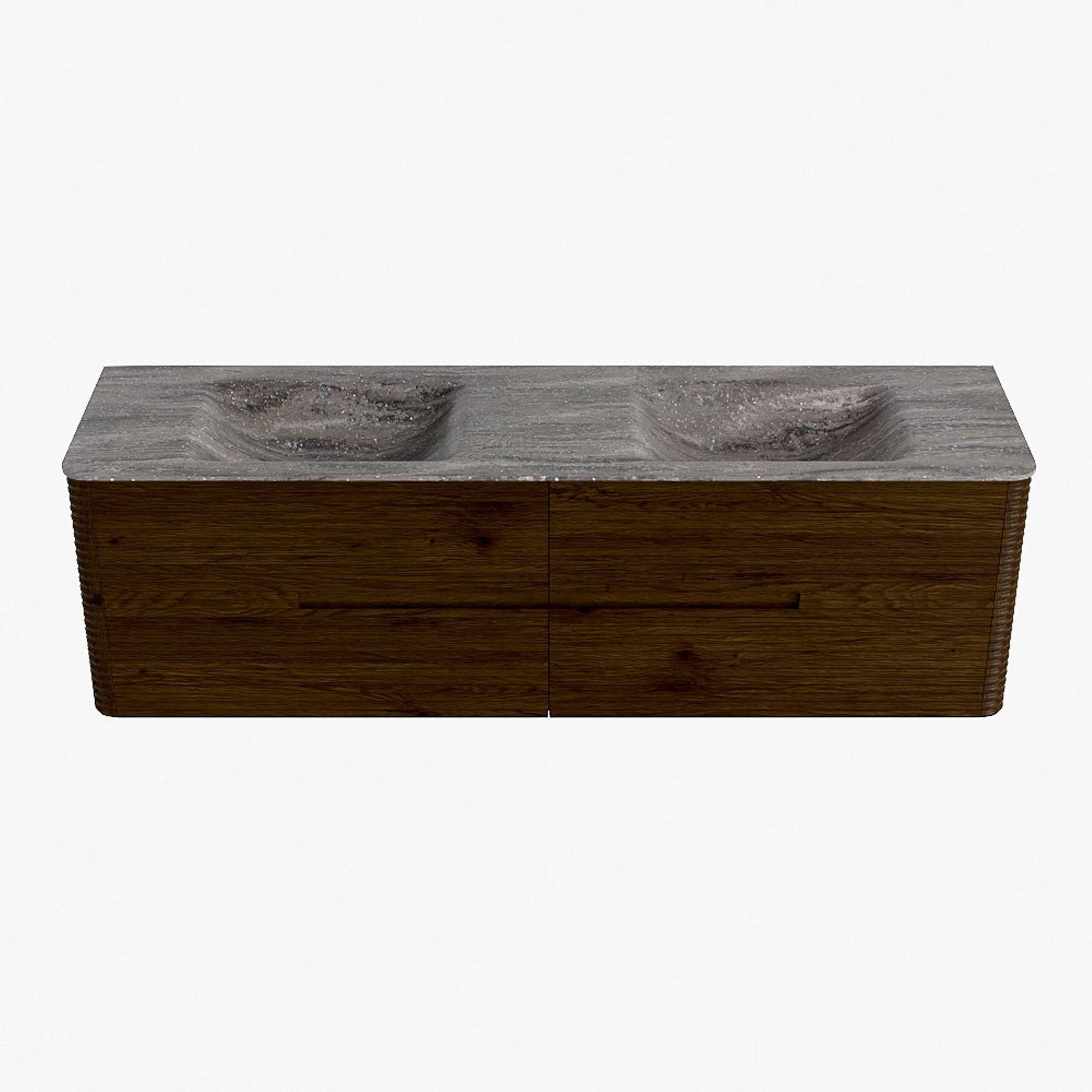 Mondiaz CIRO-DLUX Badkamermeubelset - 170x45x50cm - Solid surface wastafel Oza - 2 wasbak Dubbel - zonder kraangaten - 4 lades - Walnut