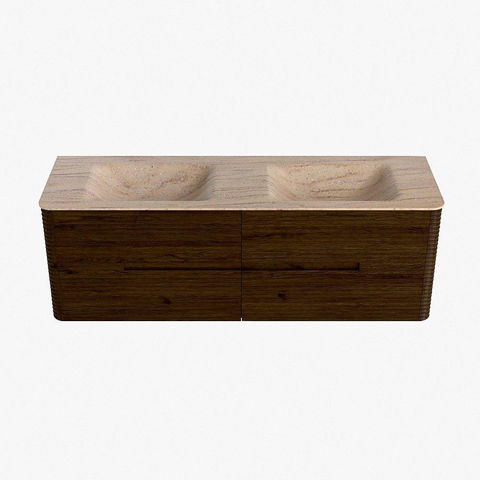 Mondiaz CIRO-DLUX Badkamermeubelset - 150x45x50cm - Solid surface wastafel Saba - 2 wasbak Dubbel - 2 kraangaten - 4 lades - Walnut