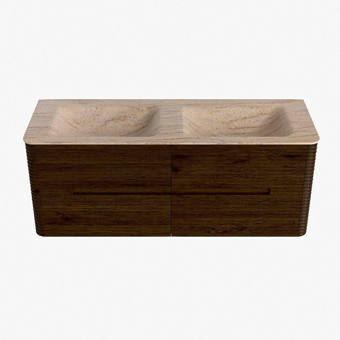 Mondiaz CIRO-DLUX Badkamermeubelset - 130x45x50cm - Solid surface wastafel Saba - 2 wasbak Dubbel - zonder kraangaten - 4 lades - Walnut