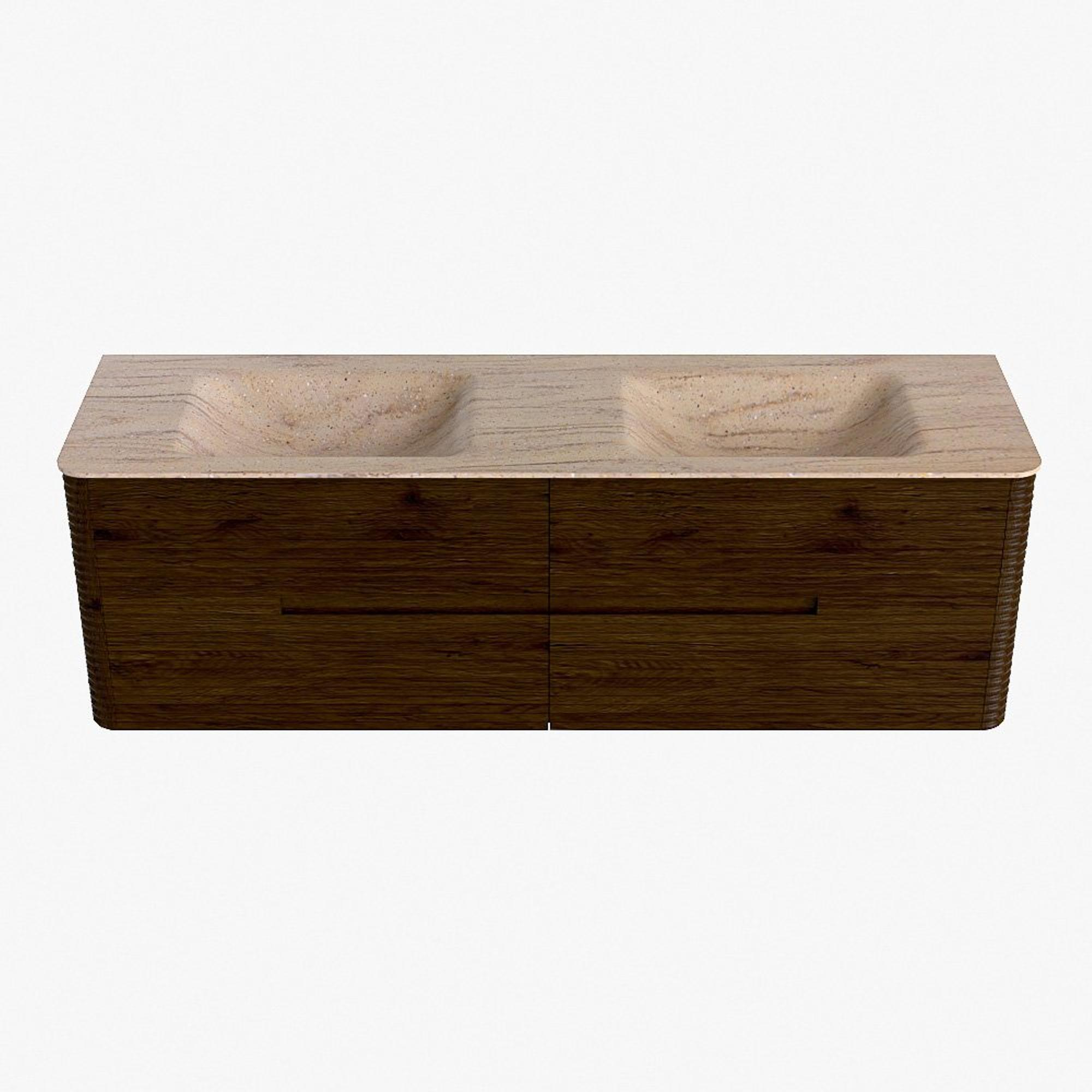 Mondiaz CIRO-DLUX Badkamermeubelset - 160x45x50cm - Solid surface wastafel Saba - 2 wasbak Dubbel - zonder kraangaten - 4 lades - Walnut