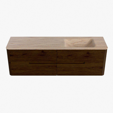 Mondiaz CIRO-DLUX Badkamermeubelset - 160x45x50cm - Solid surface wastafel Saba - 1 wasbak Rechts - 1 kraangat - 4 lades - Walnut