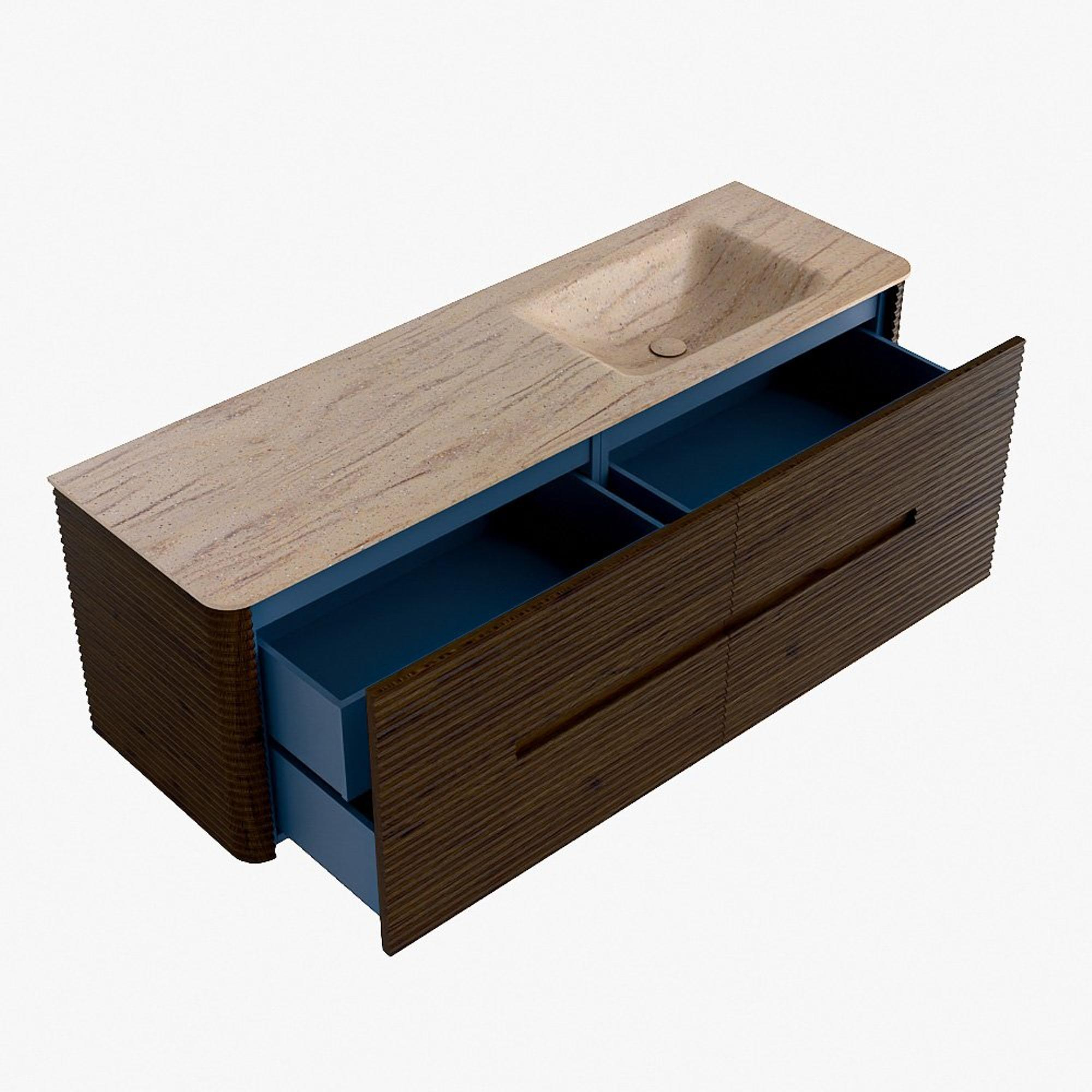 Mondiaz CIRO-DLUX Badkamermeubelset - 150x45x50cm - Solid surface wastafel Saba - 1 wasbak Rechts - zonder kraangaten - 4 lades - Walnut