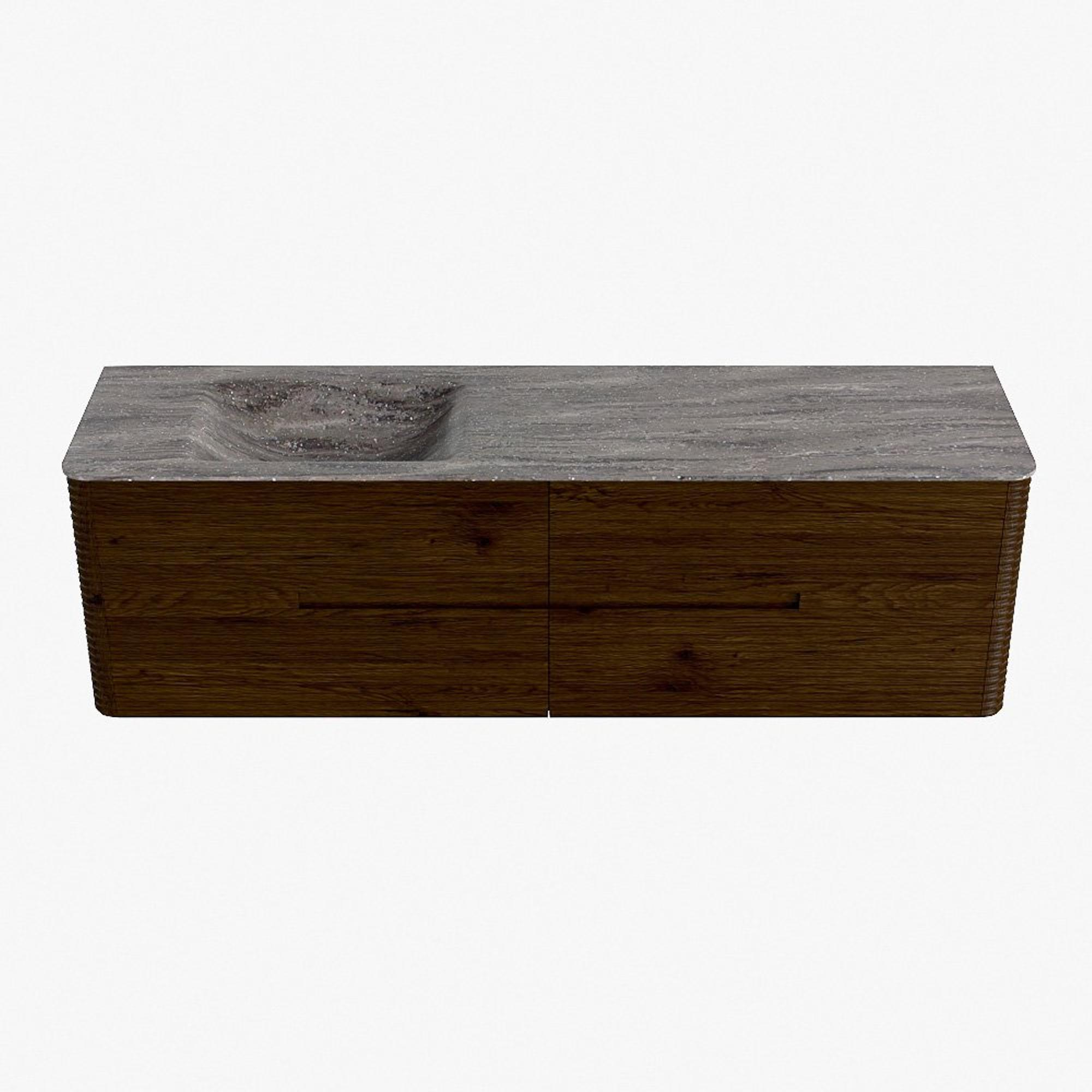 Mondiaz CIRO-DLUX Badkamermeubelset - 170x45x50cm - Solid surface wastafel Oza - 1 wasbak Links - 1 kraangat - 4 lades - Walnut