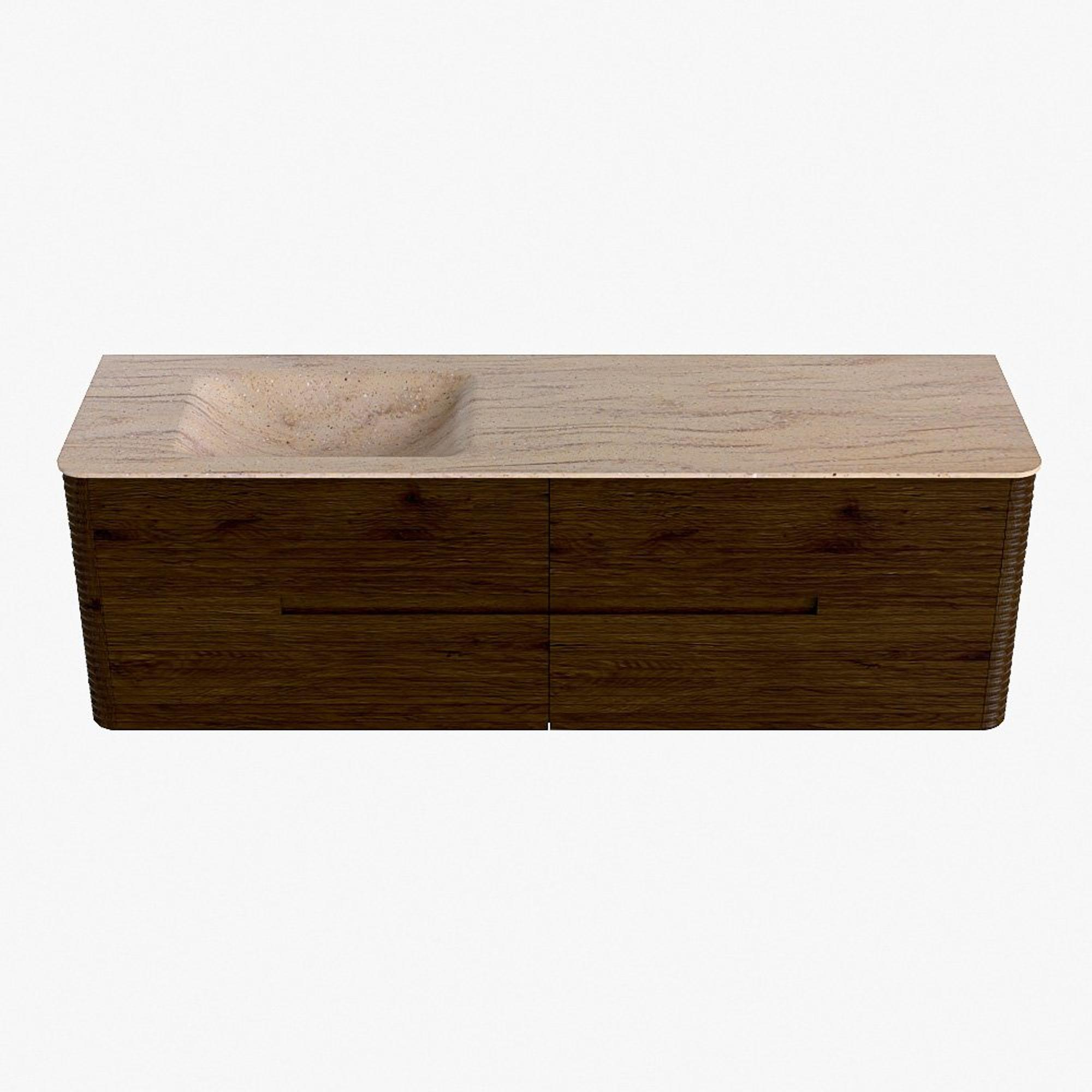 Mondiaz CIRO-DLUX Badkamermeubelset - 160x45x50cm - Solid surface wastafel Saba - 1 wasbak Links - 1 kraangat - 4 lades - Walnut