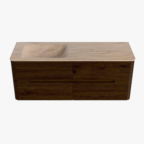 Mondiaz CIRO-DLUX Badkamermeubelset - 130x45x50cm - Solid surface wastafel Saba - 1 wasbak Links - zonder kraangaten - 4 lades - Walnut