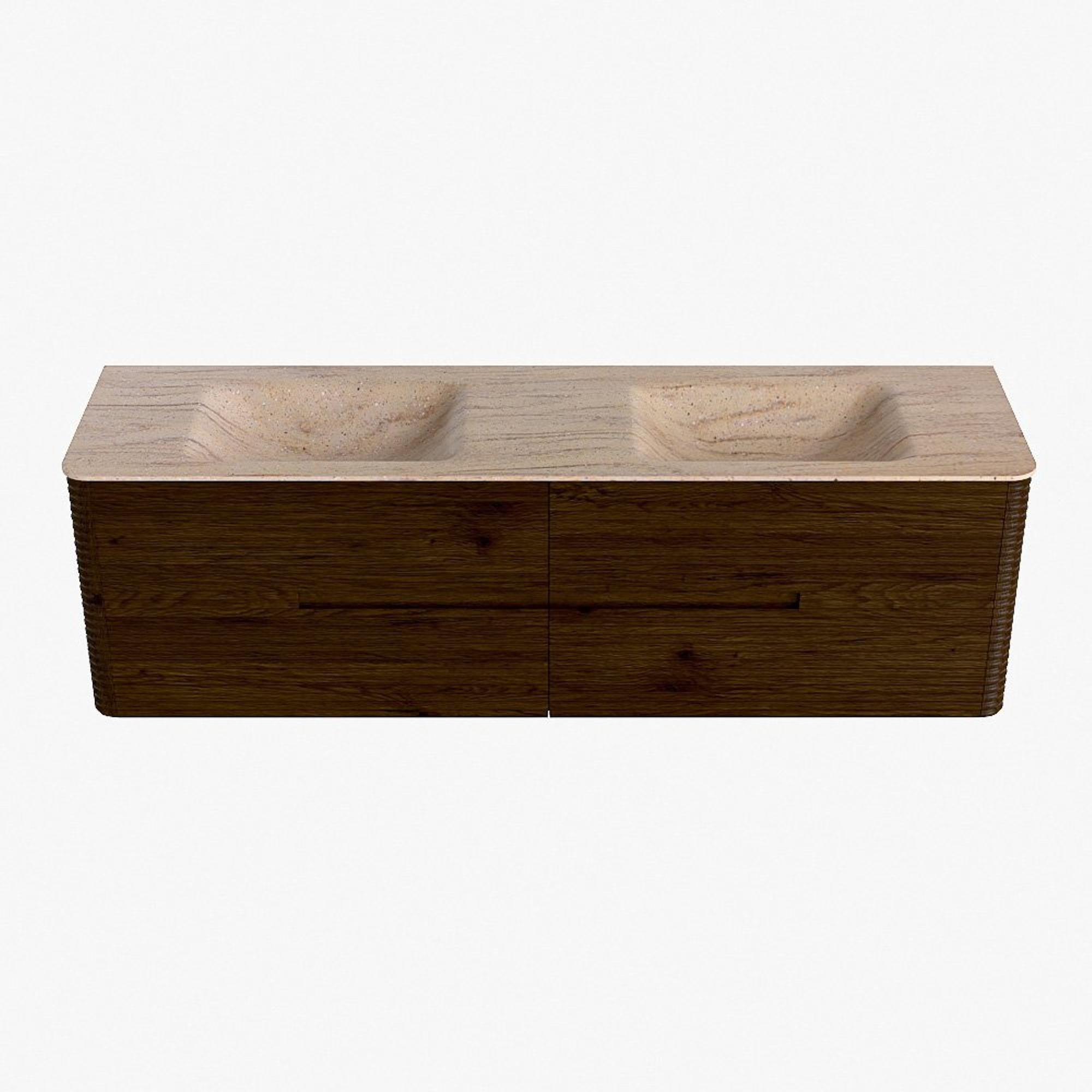 Mondiaz CIRO-DLUX Badkamermeubelset - 170x45x50cm - Solid surface wastafel Saba - 2 wasbak Dubbel - 2 kraangaten - 4 lades - Walnut