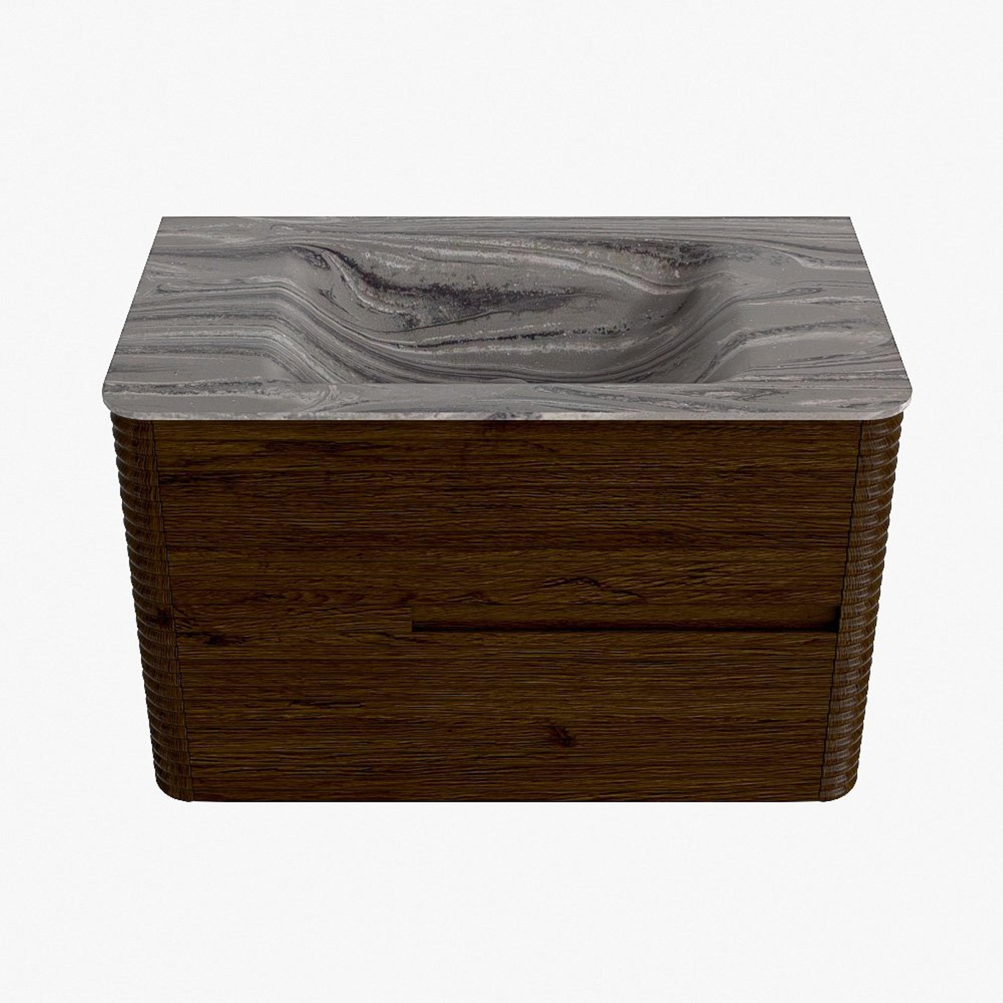Mondiaz CIRO-DLUX Badkamermeubelset - 80x45x50cm - Solid surface wastafel Sombra - 1 wasbak Midden - zonder kraangaten - 2 lades - Walnut