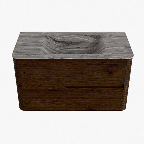 Mondiaz CIRO-DLUX Badkamermeubelset - 90x45x50cm - Solid surface wastafel Sombra - 1 wasbak Midden - 1 kraangat - 2 lades - Walnut