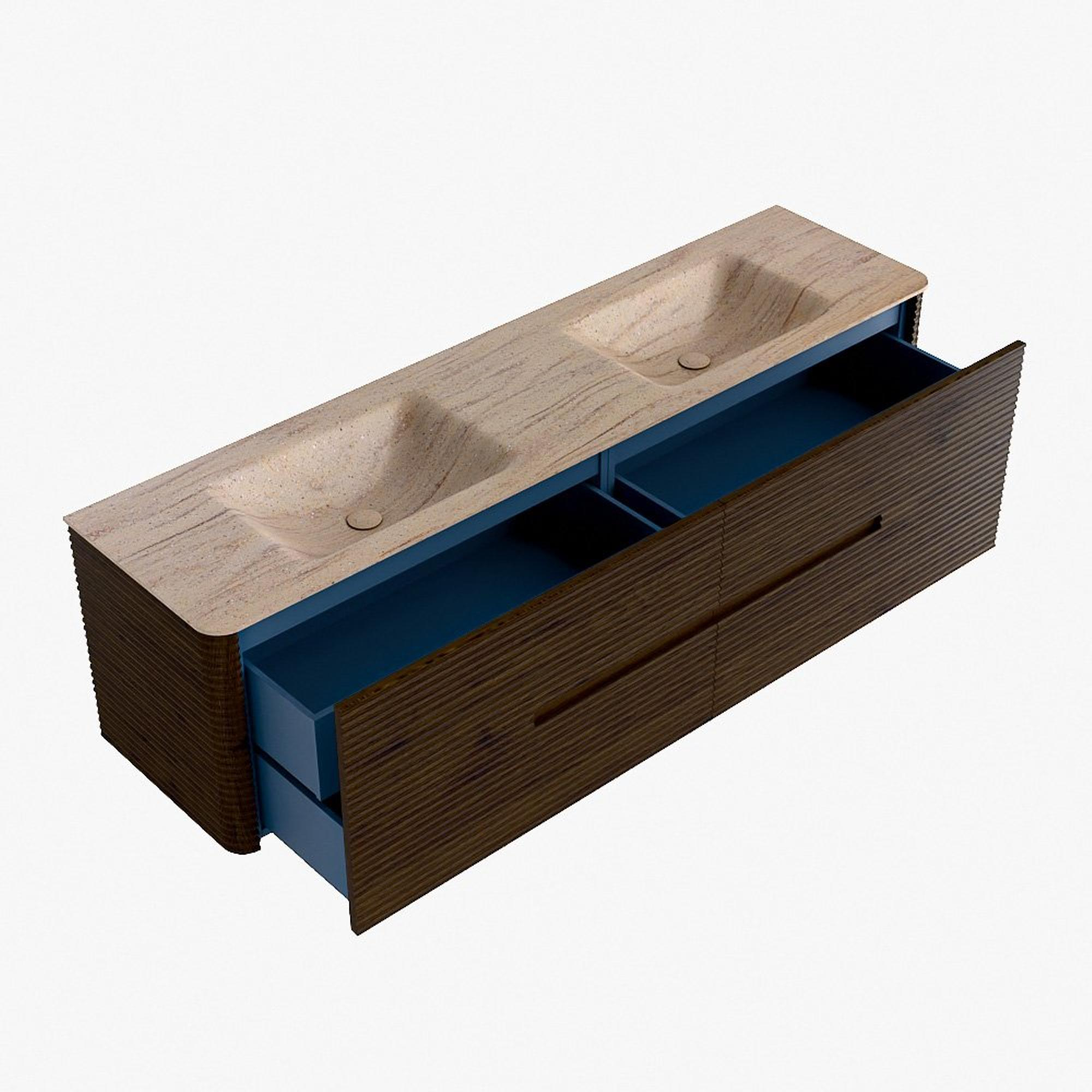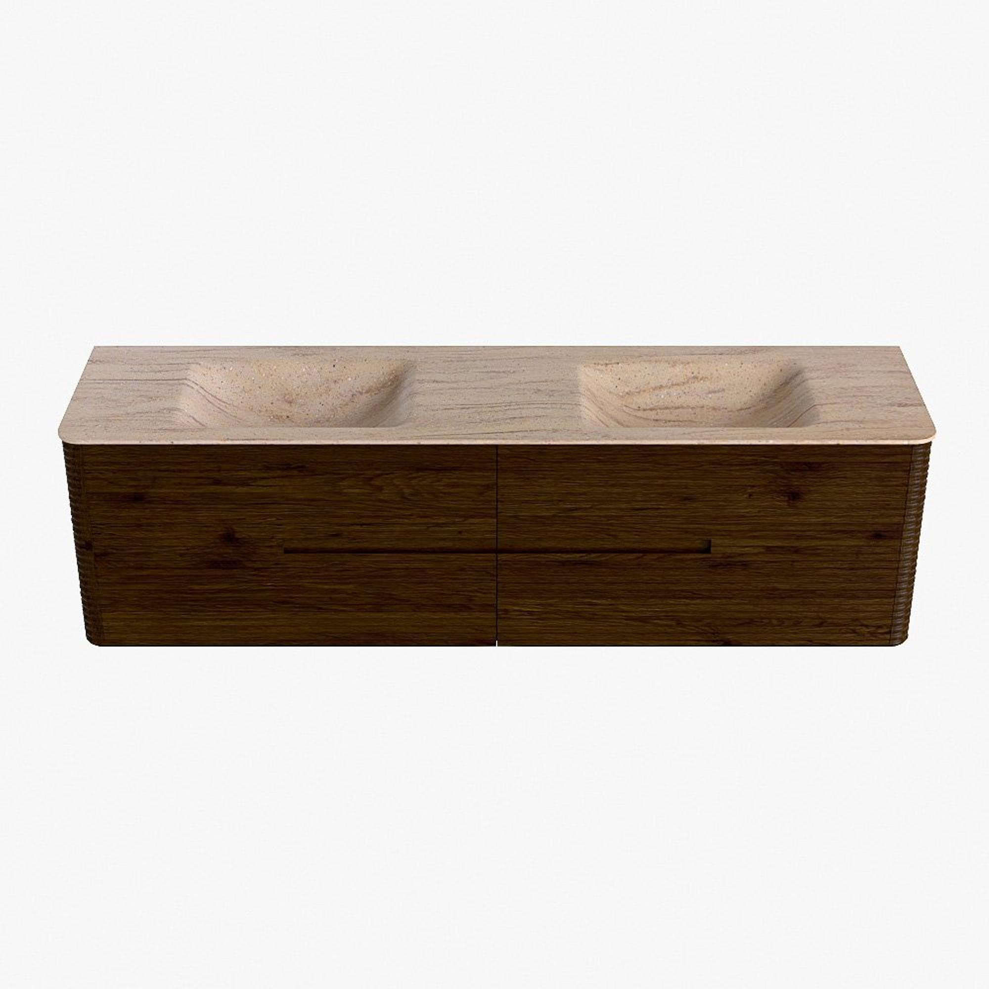 Mondiaz CIRO-DLUX Badkamermeubelset - 180x45x50cm - Solid surface wastafel Saba - 2 wasbak Dubbel - 2 kraangaten - 4 lades - Walnut
