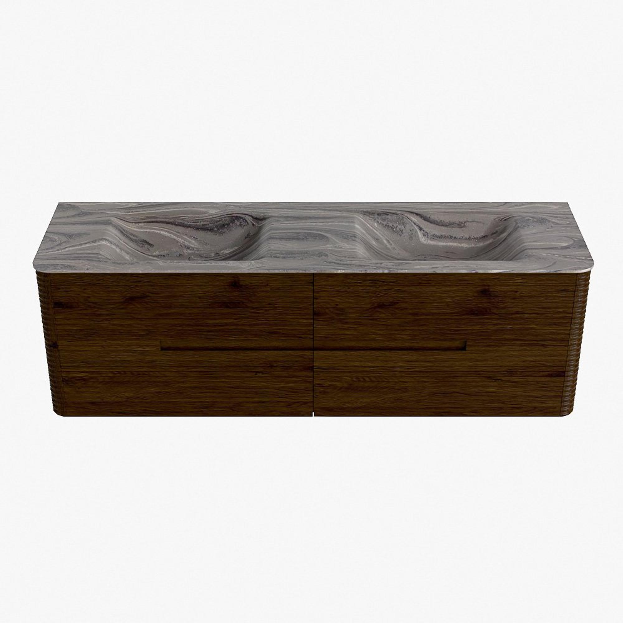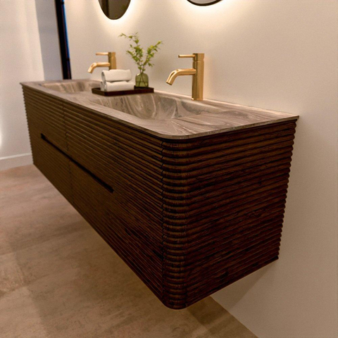 Mondiaz CIRO-DLUX Badkamermeubelset - 160x45x50cm - Solid surface wastafel Sombra - 2 wasbak Dubbel - 2 kraangaten - 4 lades - Walnut