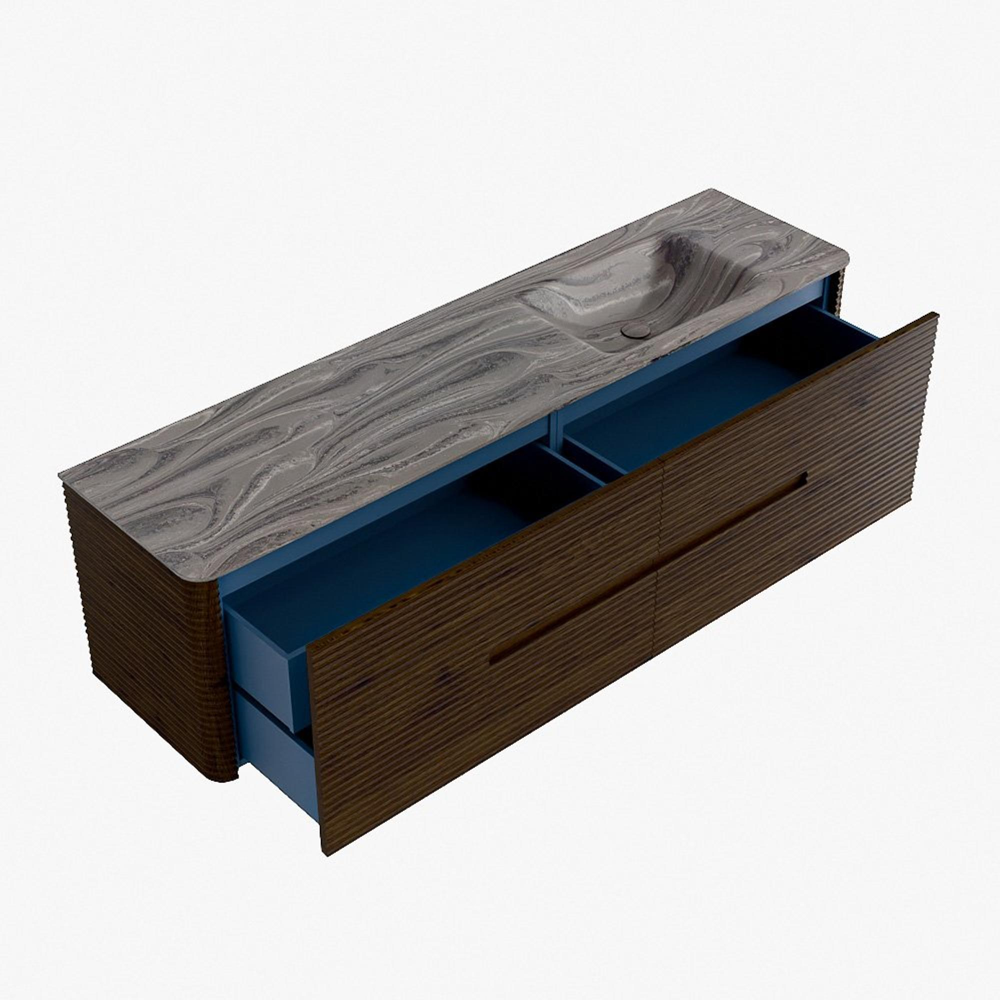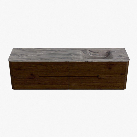 Mondiaz CIRO-DLUX Badkamermeubelset - 180x45x50cm - Solid surface wastafel Sombra - 1 wasbak Rechts - 1 kraangat - 4 lades - Walnut