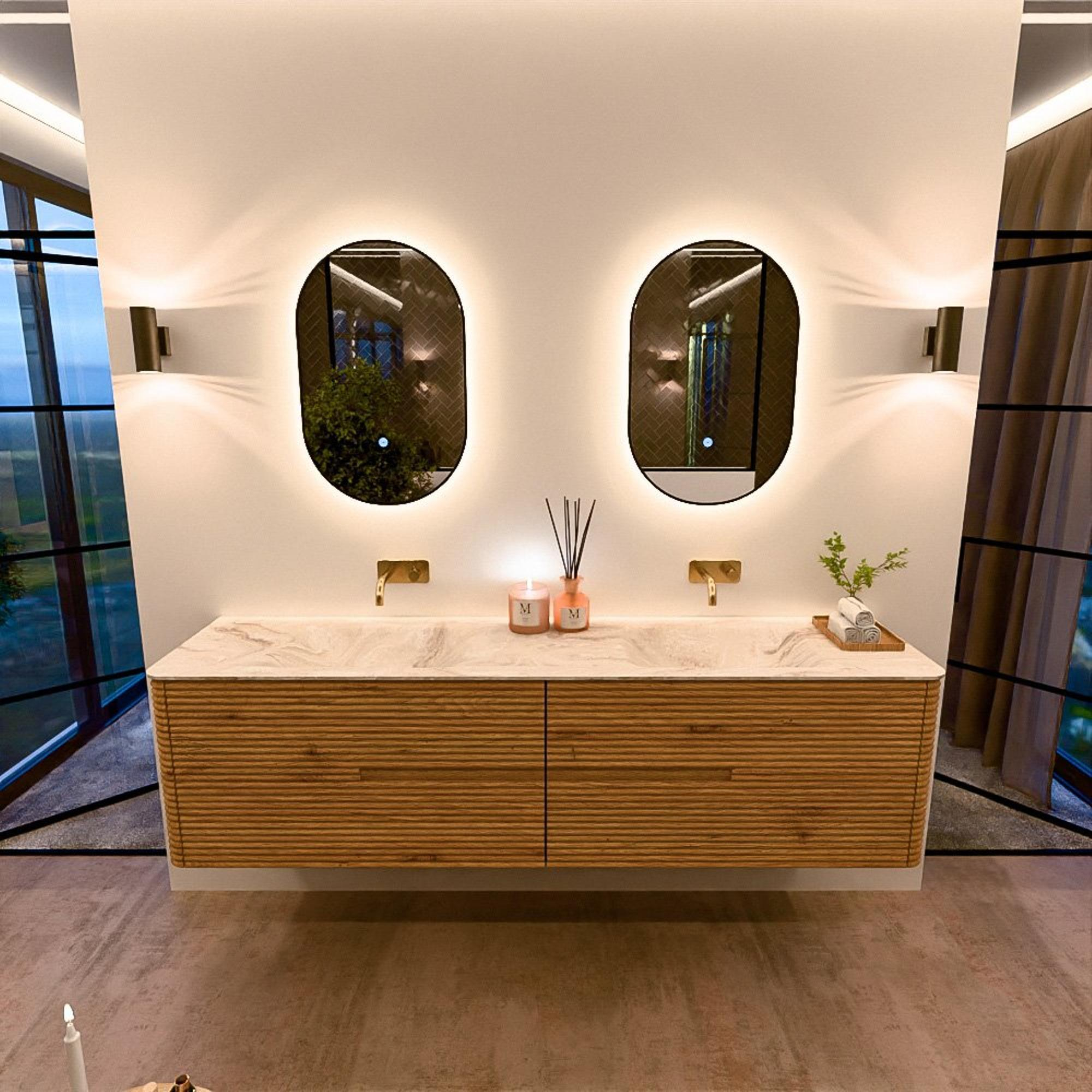 Mondiaz CIRO-DLUX Badkamermeubelset - 190x45x50cm - Solid surface wastafel Frappe - 2 wasbak Dubbel - zonder kraangaten - 4 lades - Oak