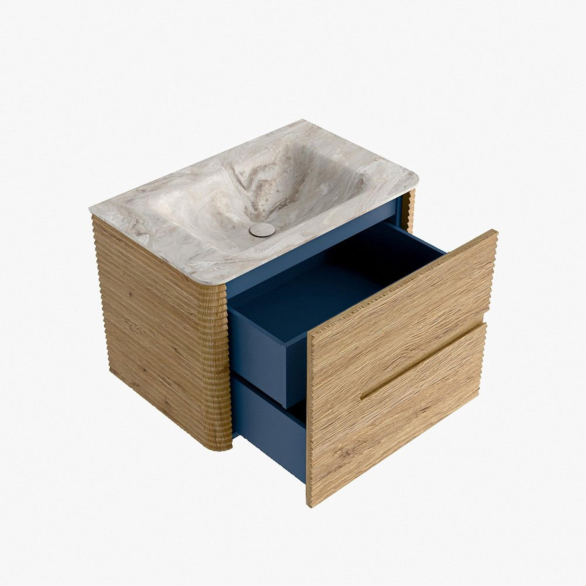 Mondiaz CIRO-DLUX Badkamermeubelset - 70x45x50cm - Solid surface wastafel Frappe - 1 wasbak Midden - 1 kraangat - 2 lades - Oak